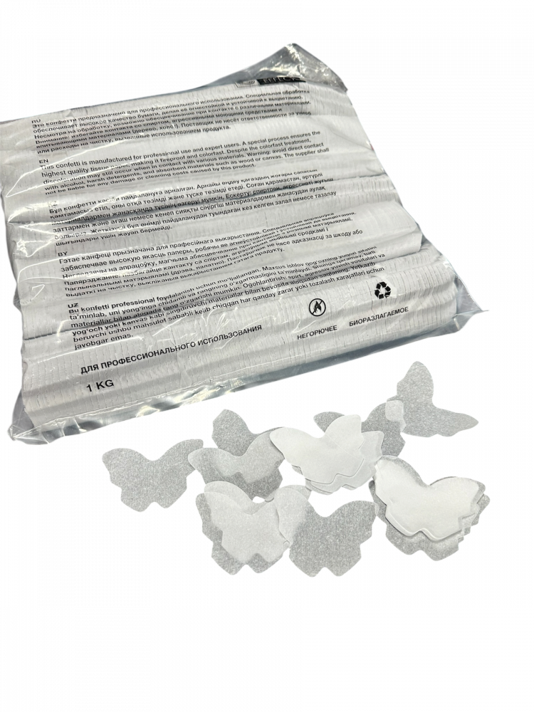 Конфетти бумажное Бабочки 5см белые 1кг